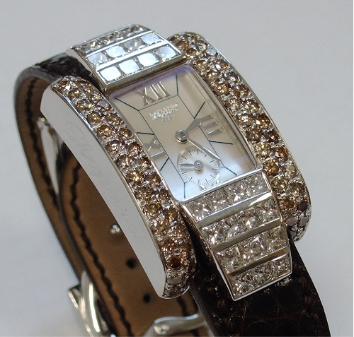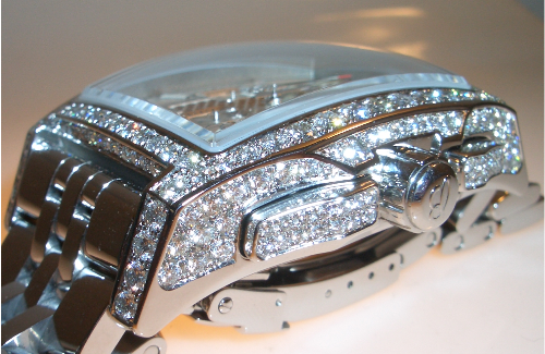 Gehäuse und Drücker werden individuell nach Kundenwunsch mit Billanten und anderen Edelsteinen ausgefasst.